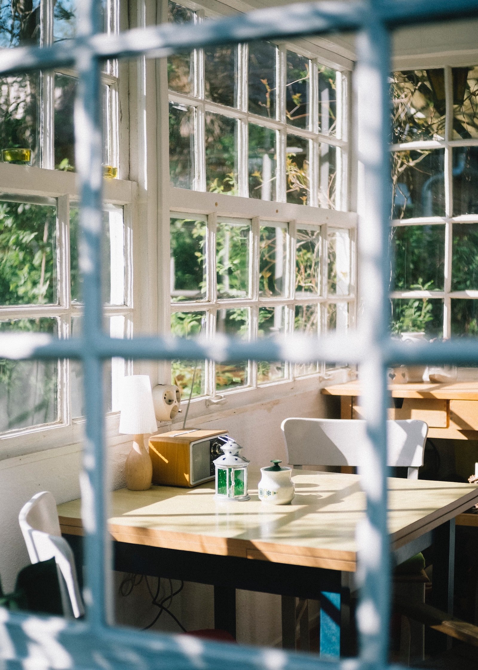 The room itself is filled with natural light (a real treat for the Swedes!) and very well organized. The bed stands on one side of the room and is stacked with pillows of various sizes. There is even a dining area in this small apartment which consists of a retractable table and three chairs.
